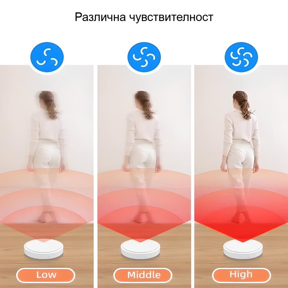 Avatto HE20 ви дава възможност да изберете между ниска, средна и висока чувствителност, в зависимост от нуждите на помещението.