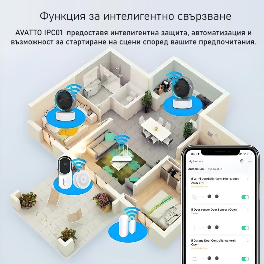 С AVATTO IPC01 2MP Смарт WiFi IP Камерата вашият дом става по-интелигентен, по-защитен и по-удобен, предлагайки ви спокойствие и увереност, че винаги можете да бъдете в контрол.