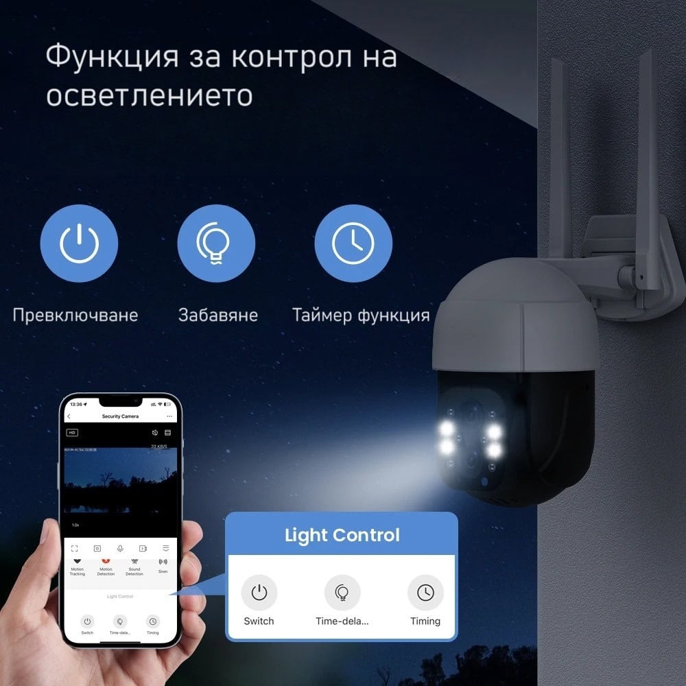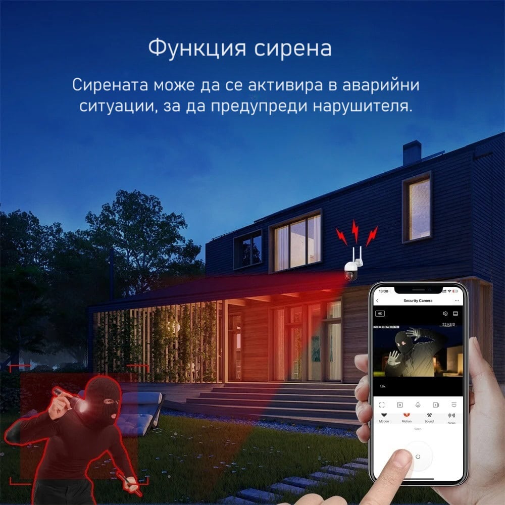 В екстрени ситуации, като например опит за неправомерно проникване, камерата може да активира вградената си сирена, за да отблъсне потенциални нарушители.