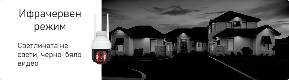 | Нощно виждане | Инфрачервен режим (IR), цветен режим на осветление, интелигентен режим |