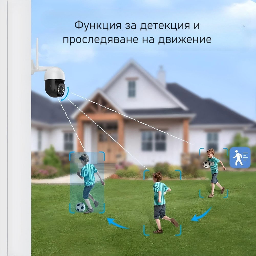 Камерата може автоматично да засича движение и да проследява обектите, за да се захванат важни моменти и да се изпратят незабавни уведомления. Можете да зададете конкретна зона за наблюдение, като по този начин фокусирате детекцията на движение само в определен участък от обхвата на камерата.