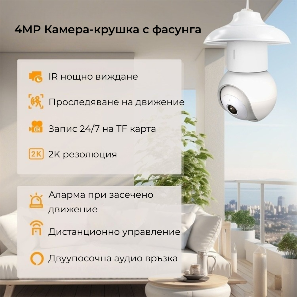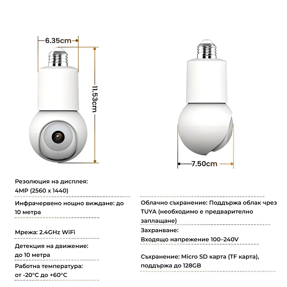 Камерата АVATTO MIUC-L02 се инсталира бързо и лесно в стандартен E27 патрон, което я прави удобна за монтаж без нужда от допълнителни инструменти или промени в осветителната система.