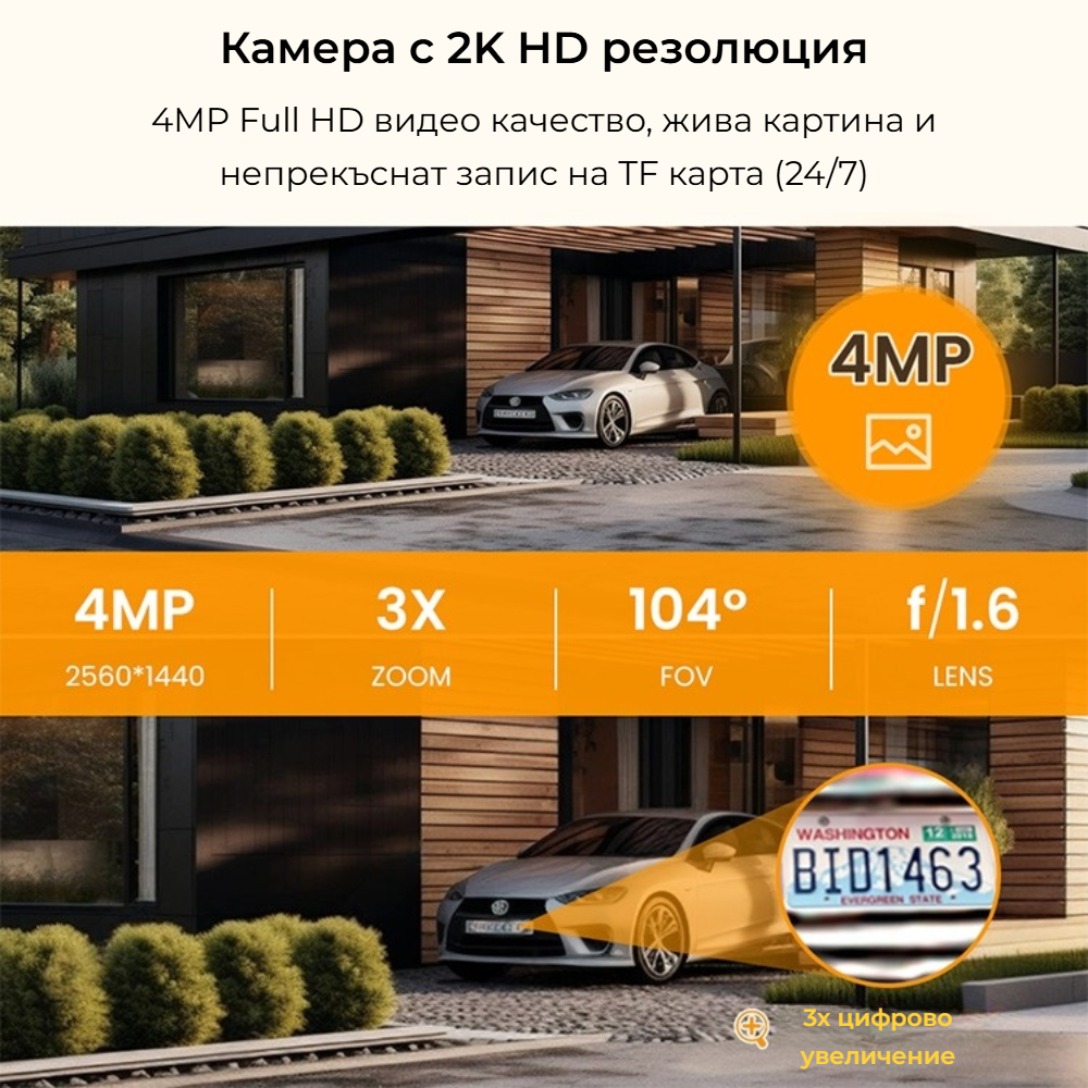 АVATTO MIUC-L02 е оборудвана с мощна 4-мегапикселова камера, която заснема видео с резолюция 2560×1440 пиксела. Това осигурява изключително ясни и детайлни изображения, позволяващи ви да виждате всяка дребна подробност в реално време. Високата разделителна способност гарантира, че лицата, обектите и случващото се във вашия дом или офис са отчетливи дори при приближение, което значително повишава ефективността на видеонаблюдението и сигурността.