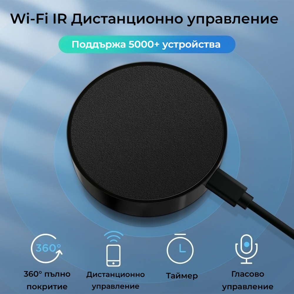 Това дистанционно е компактен и лесен за инсталиране уред, който се захранва с Micro USB и се вписва безпроблемно във всяко домашно пространство, превръщайки дома ви в по-умен и по-удобен.