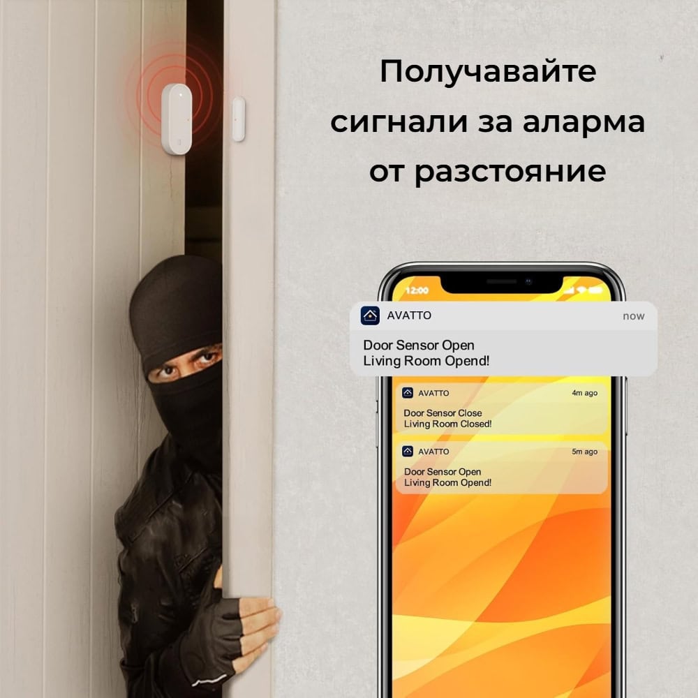 Avatto ZDS16 следи непрекъснато състоянието на вратите и прозорците ви и изпраща мигновени известия на мобилното ви устройство при всяко отваряне или затваряне. Така винаги сте информирани за движението в дома си, дори когато не сте там, което ви осигурява допълнителен комфорт и сигурност.