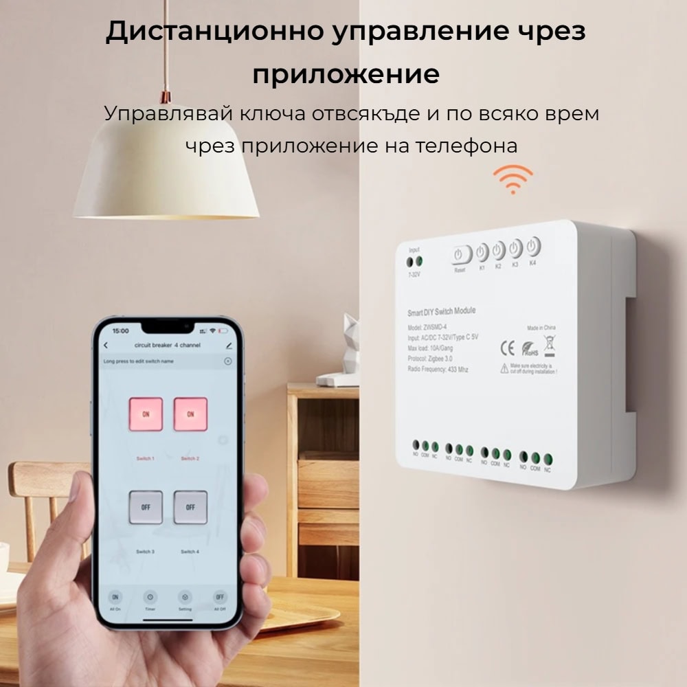 Avatto ZWSMD-4 поддържа управление чрез 433MHz RF (радиочестотен) сигнал, което ви дава още един удобен начин за контрол на устройствата – без нужда от приложение. Можете да включвате и изключвате всеки от четирите канала с помощта на съвместимо RF дистанционно, което е особено полезно при липса на интернет или за бърз достъп в помещения без телефон.