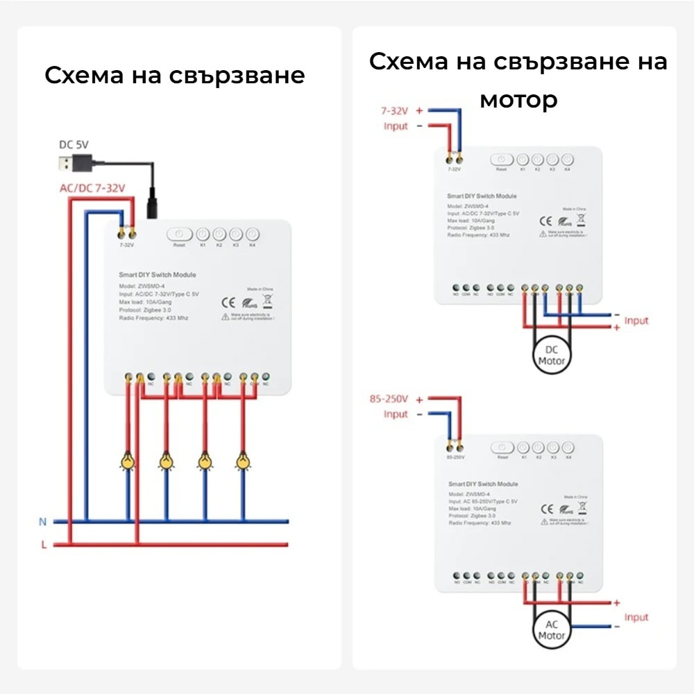 Avatto ZWSMD-4 разполага с четири отделни канала, които могат да управляват различни уреди или системи независимо един от друг. Това означава, че можете едновременно да контролирате осветление, електрически контакти, помпи или други устройства, без те да влияят едно на друго. Всяки канал може да бъде включван или изключван поотделно чрез приложението, гласови команди или дистанционно управление, което ви дава максимална гъвкавост и удобство в управлението на дома или офиса.