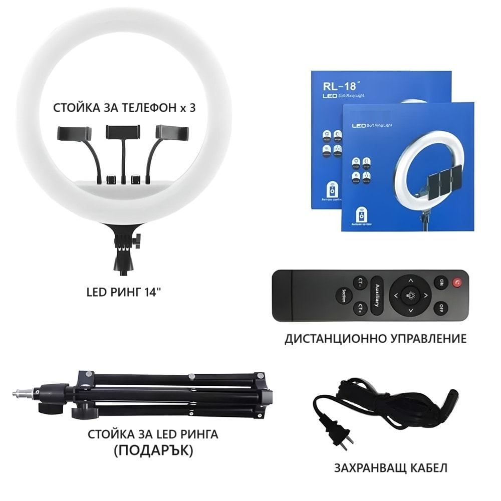 Със своите 10 степени на яркост за всяка от трите цветови опции, RL-18 предоставя широка гама от настройки за различни сценарии – от професионални фотосесии и видеозаснемания до грим и влогове. Дистанционният контрол и лесната настройка го правят удобен и лесен за употреба.