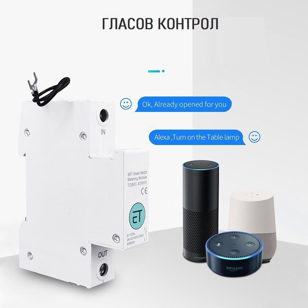 ✓ Съвместимост – eWelink WiFi 1P 2P 63A е съвместим със смарт устройства и гласови асистенти като Amazon Alexa и Google Assistant, позволяващи гласов контрол на уредите.