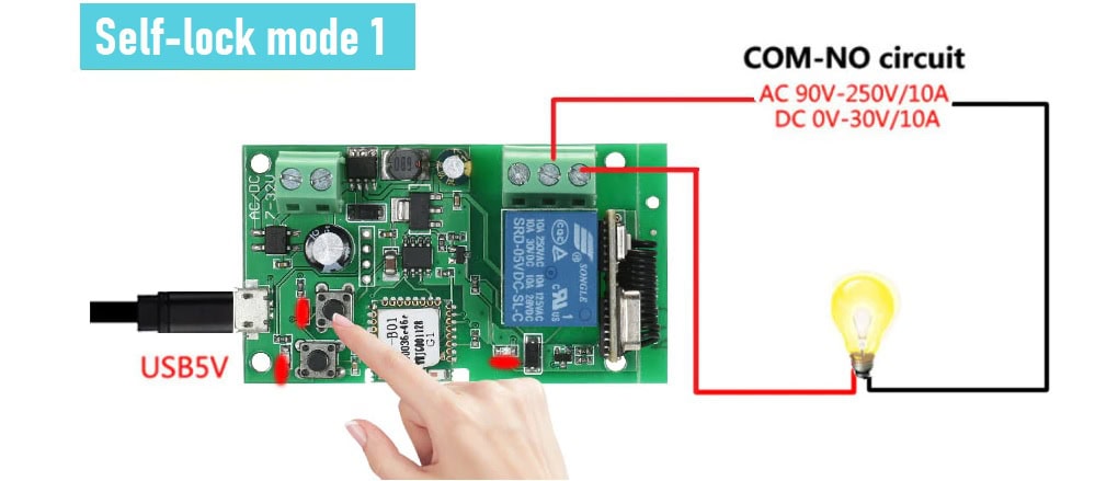 В режим на самозаключване може дистанционно да се включват / изключват свързани устройства в реално време. А когато са в inching режим, могат да бъдат избрани два начина на работа: