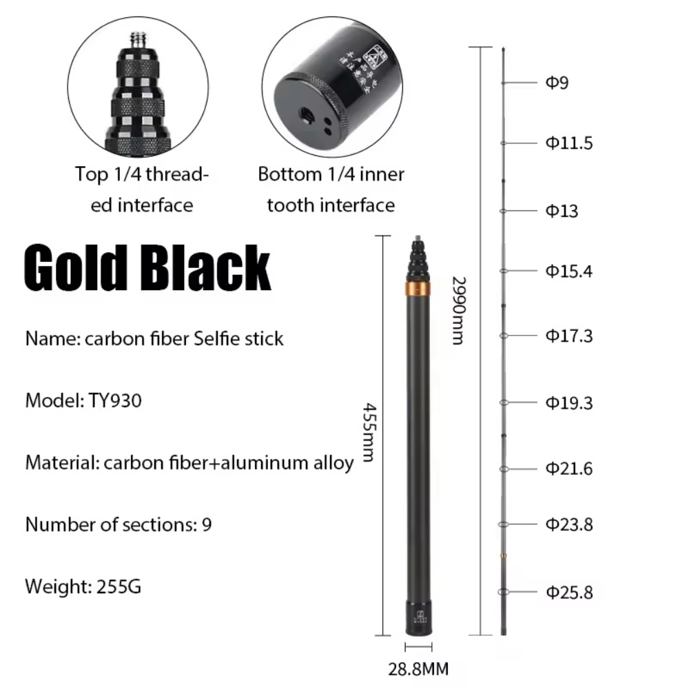 Това е удължен, невидим карбонов селфи стик с дължина до 3 метра, създаден специално за Insta360 X5/X4/X3, както и за GoPro и други екшън камери. Благодарение на конструкцията си от въглеродни влакна (карбон), стикът е едновременно ултра лек и много здрав, което го прави идеален за динамично заснемане – спорт, пътувания, влогове и 360° кадри.