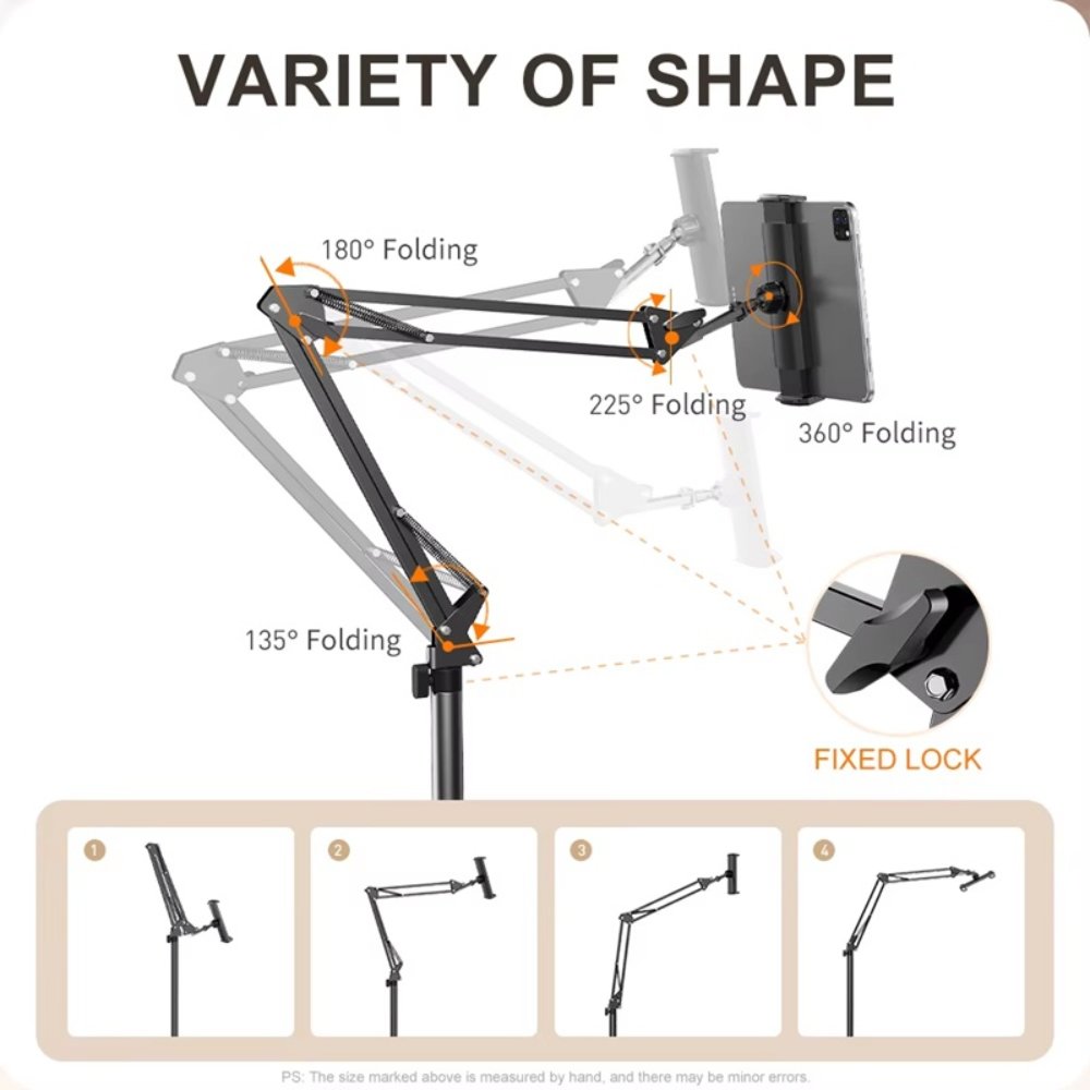 Стойката може да се използва навсякъде – в леглото за гледане на видео, на дивана за удобно скролване, в офиса за работа или в кухнята за следване на рецепти. Позволява използване без да държите устройството в ръка.Благодарение на стабилността и регулируемия ъгъл, позицията на камерата винаги е оптимална. Подходяща за Zoom/Teams разговори, TikTok/YouTube стрийминг или гледане на онлайн уроци.