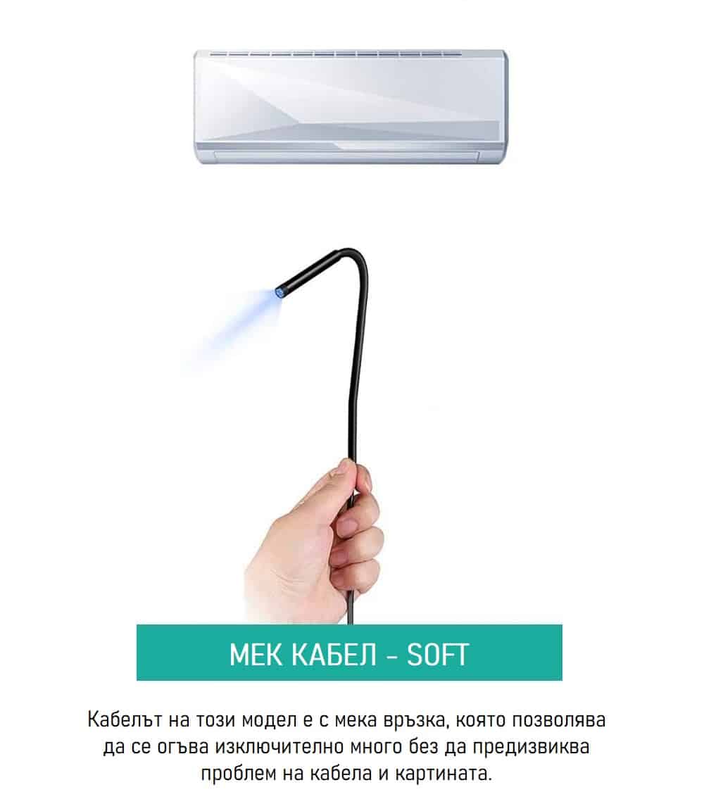 Кабелът на този модел е с мека връзка, която позволява да се огъва изключително много без да предизвиква проблем на кабела и картината. Той е най-подходящ в ситуации, където е необходимо да се достигне до труднодостъпни или места, които имат множество завои или извивки.
