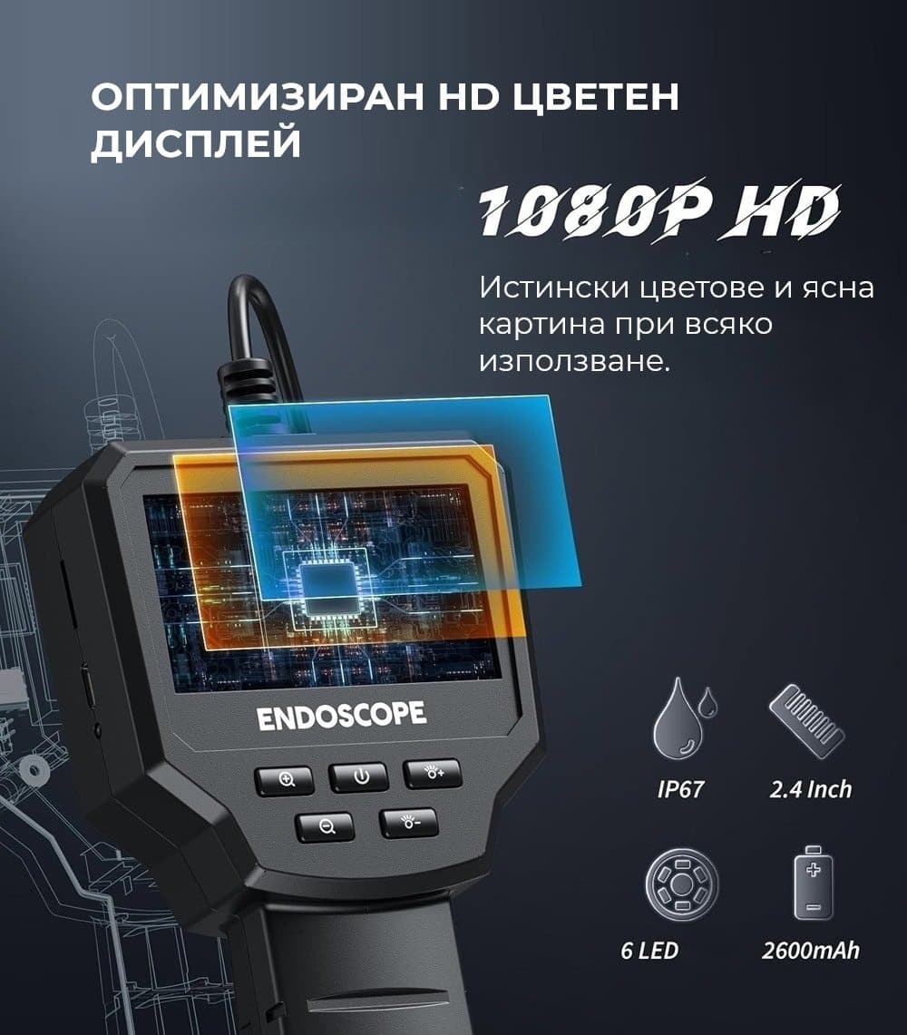 Оборудван с 8.5 мм HD камера с 1920×1080 резолюция и 8 регулируеми LED светлини, осигурява детайлна видимост дори в тъмни условия.