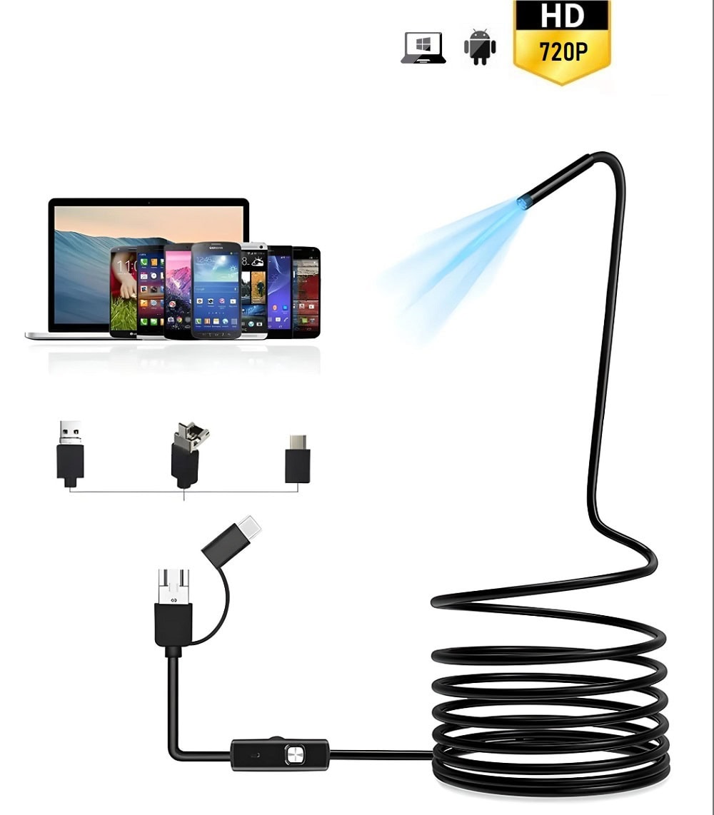 Ендоскопа разполага с 3 в 1 USB интерфейс, който е съвместим с различни устройства като Android телефони с функция OTG, Android таблети, Windows и Mac лаптопи и настолни компютри.