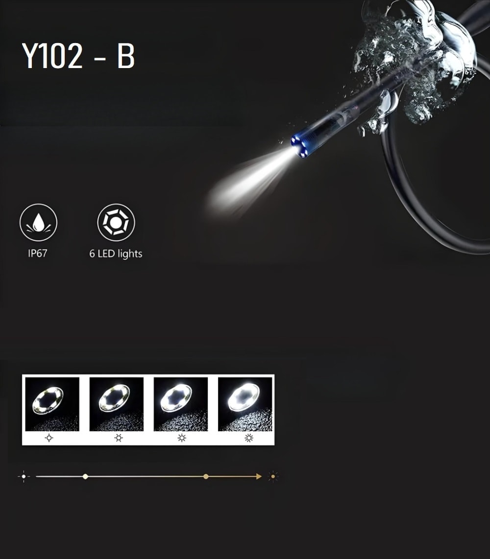 За разлика от меките кабели, този ендоскоп използва подобрен твърд кабел, който е по-издръжлив и надежден. Inskam Y102 предлага възможност за достигане до различни места и обекти, като запазва формата си при огъване, за да улесни неговото използване.