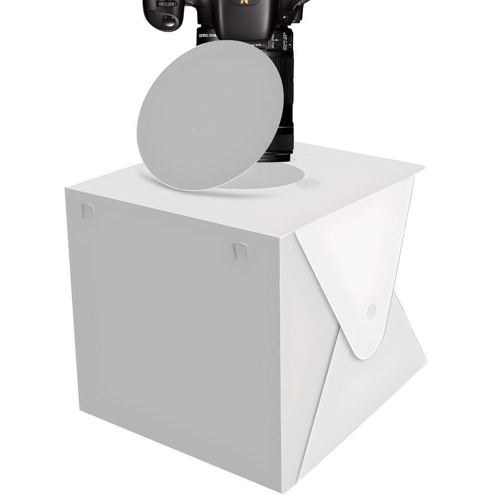 Това което предлагаме е фотокутия подходяща за заснемане на малки и средни продукти, която лесно може да бъде събрана за по-малко 5 мин. и да бъдат готови за снимка.