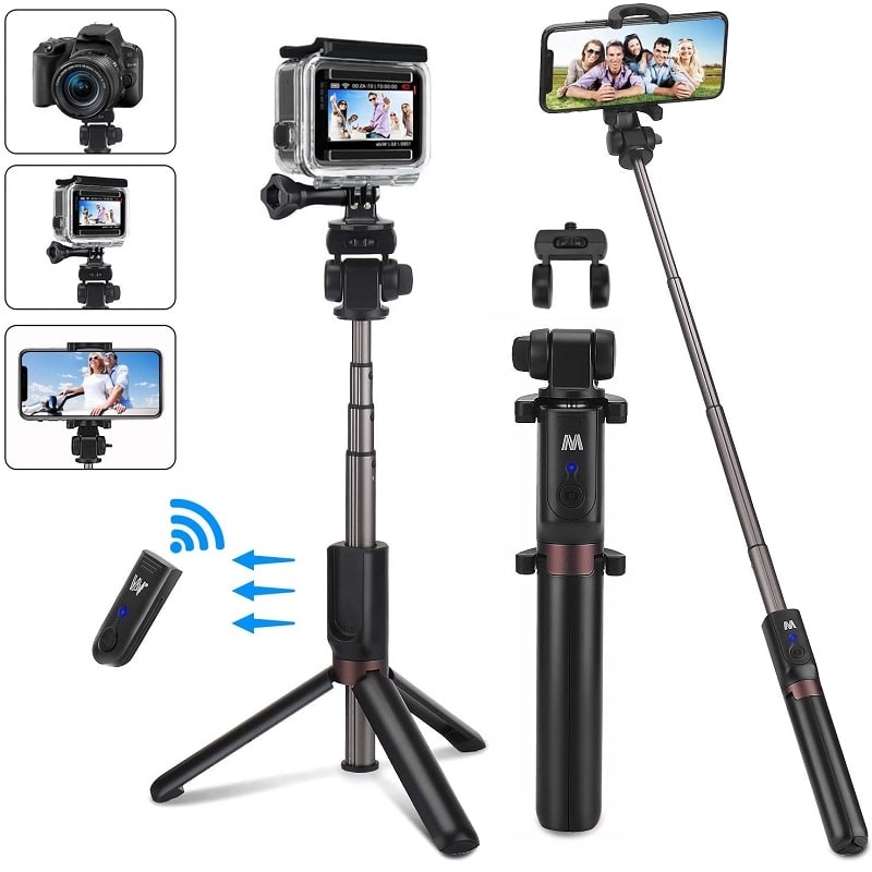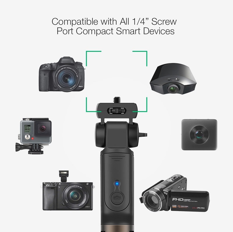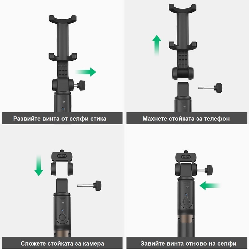 ✓ 5 в 1 селфи стик с възможност за използване 2 в 1 – използване с телефон и камера.