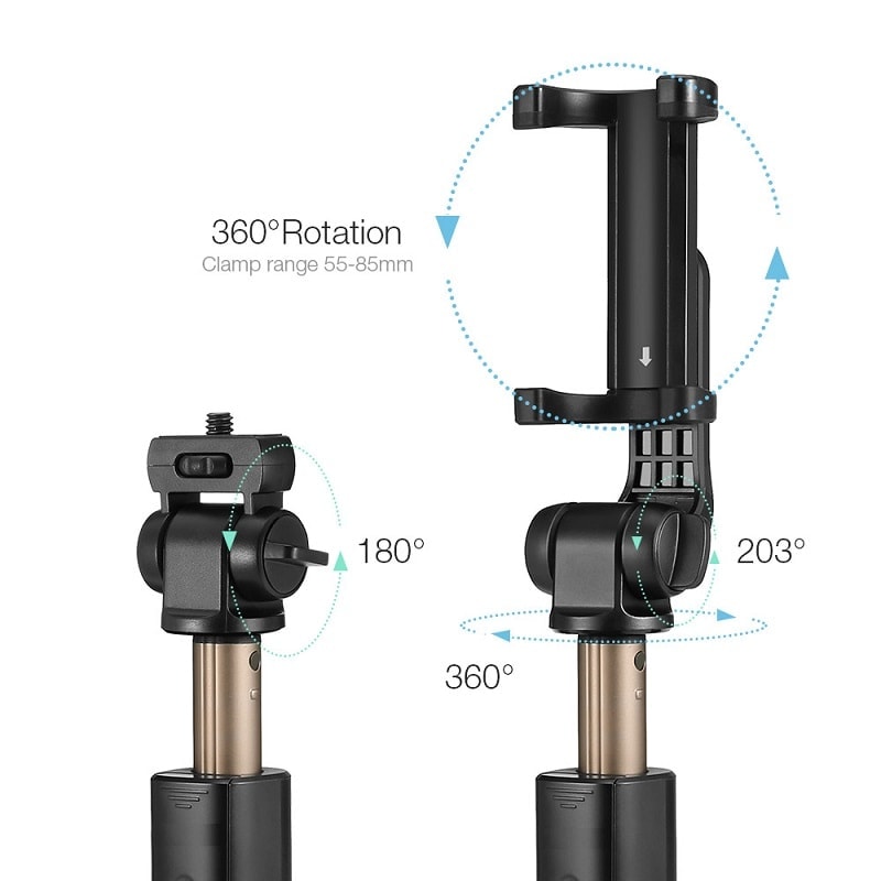 Главата на пръчката към селфи стика може да се върти на цели 360 градуса, за да улови перфектния изглед/снимка.