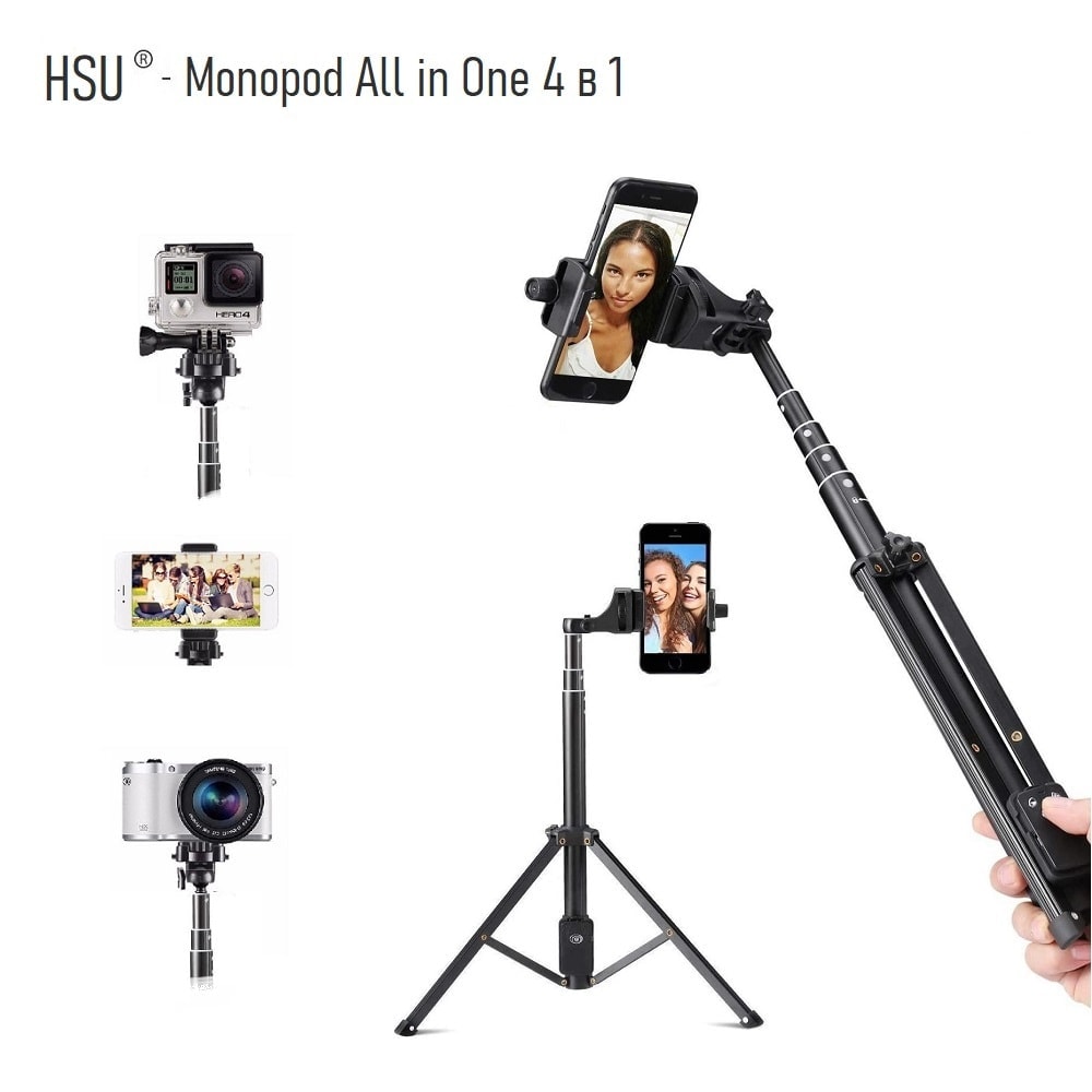 Селфи стик 4 в 1 HSU Monopod All in One е аксесоар от ново поколение, който разполага с 4 страхотни опции: