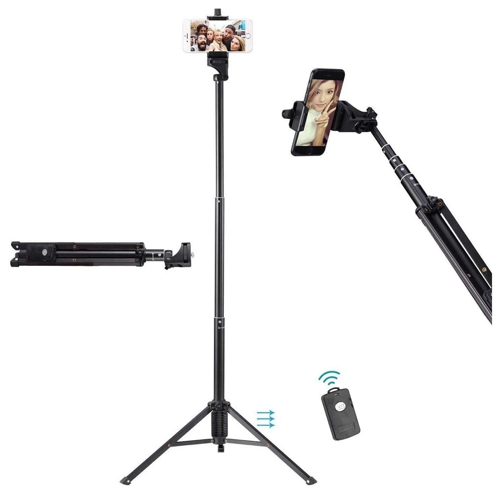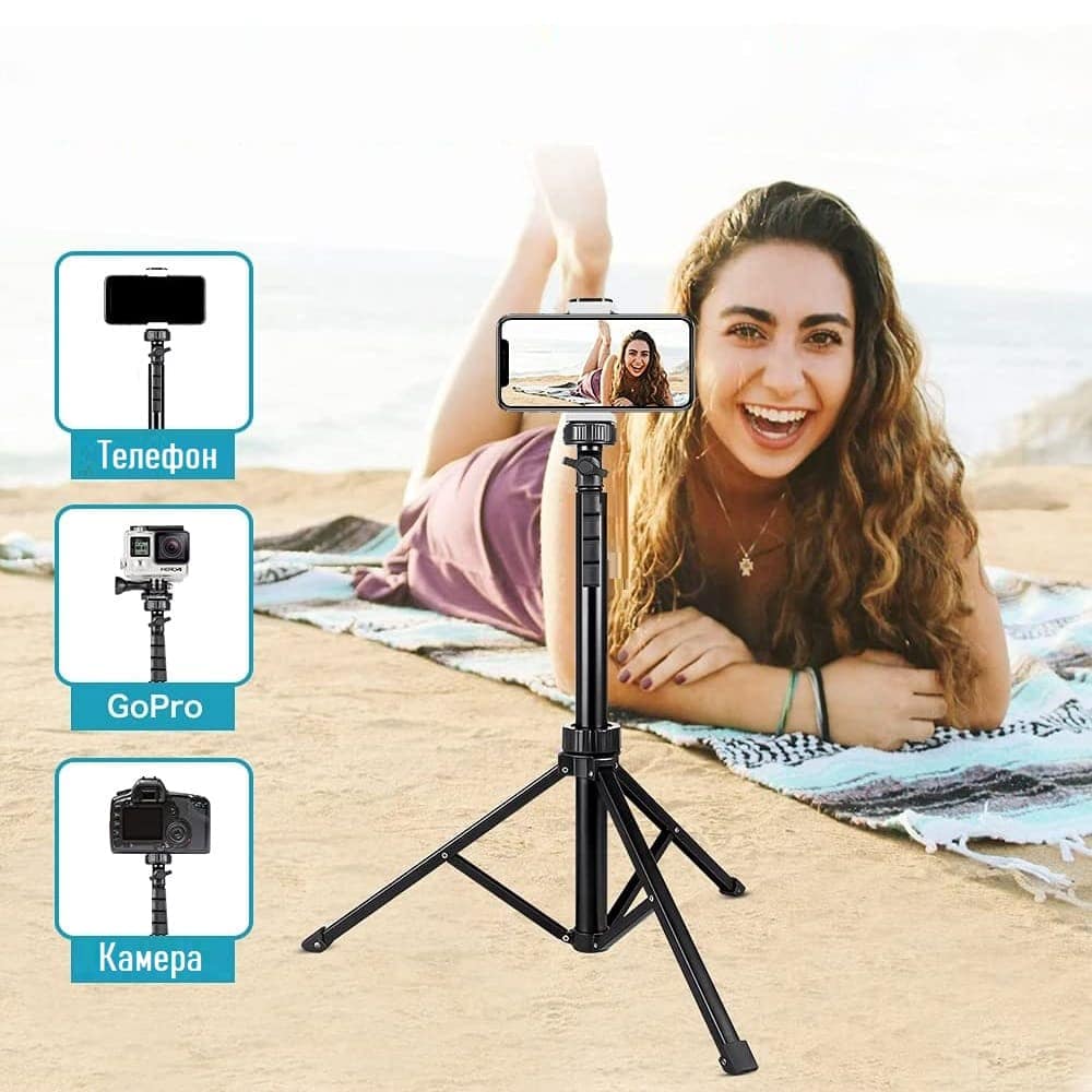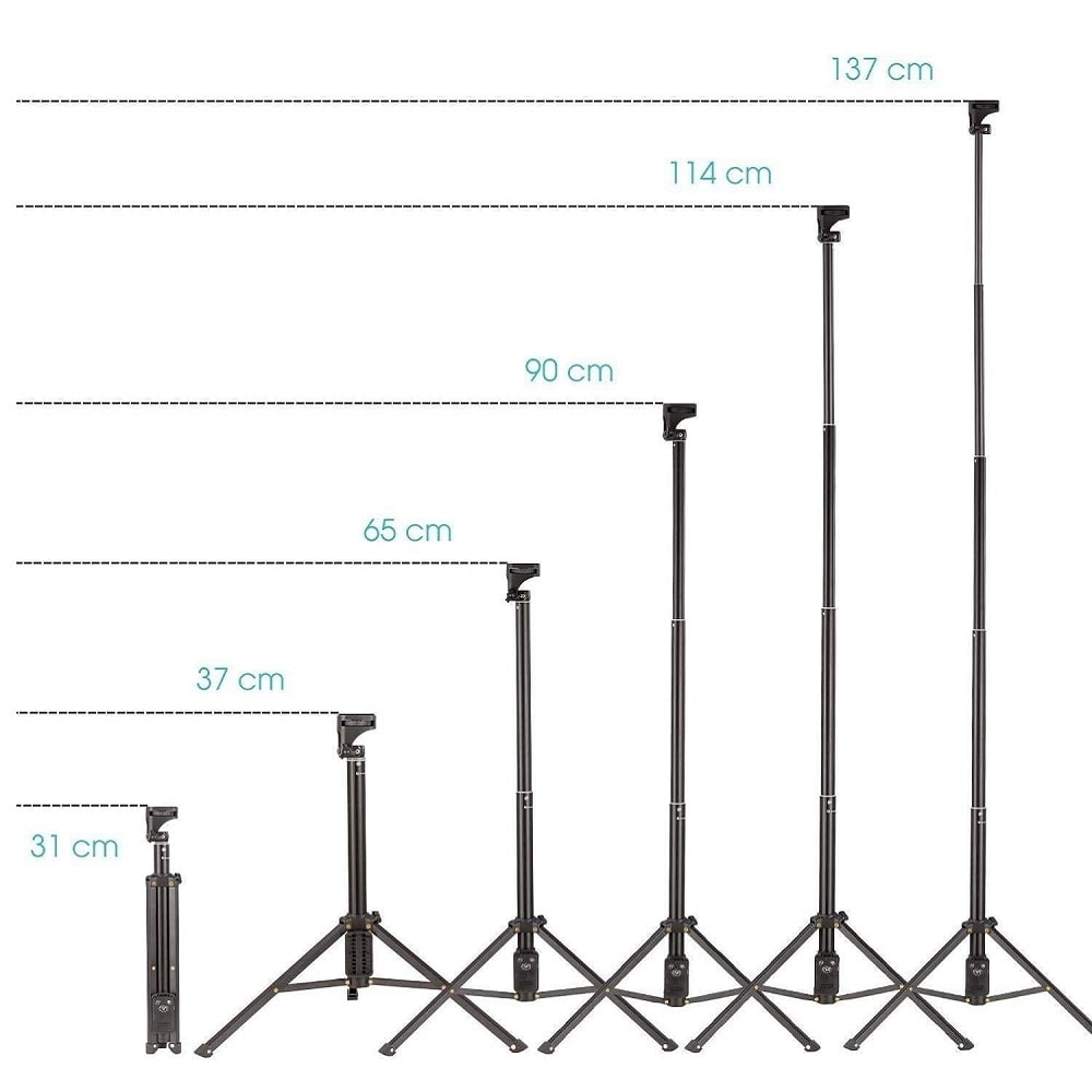 В сравнение с традиционния селфи стик или трипод, този продукт притежава телескопична дължина с максимална размер на пръчката ~137 см.