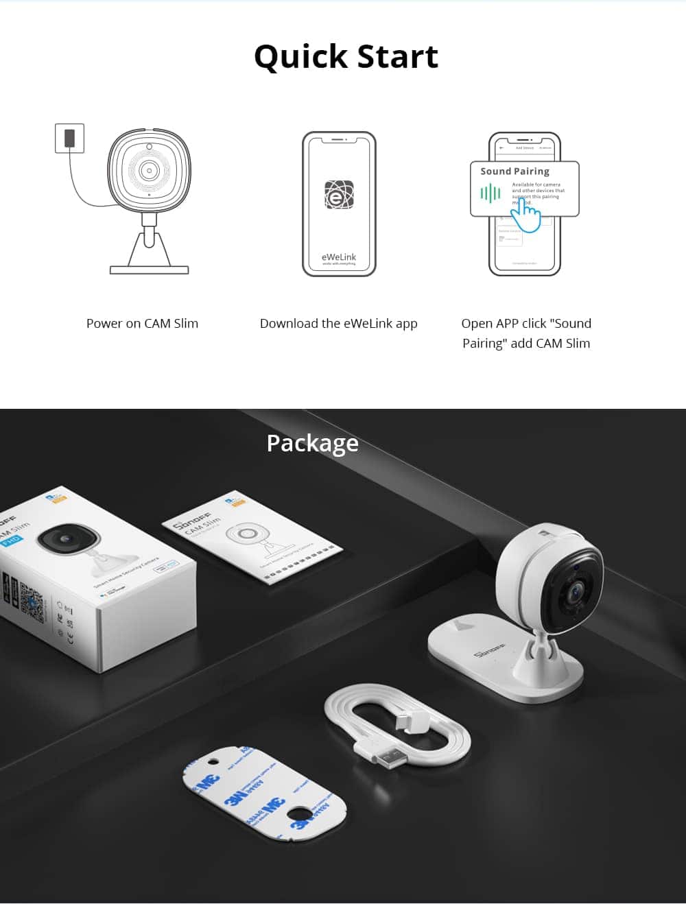 SONOFF CAM Slim  предлага 1080P HD резолюция, нощно виждане, откриване на движение и аларма, за да поддържа дома или офисът ви в безопасна среда, денем и нощем.