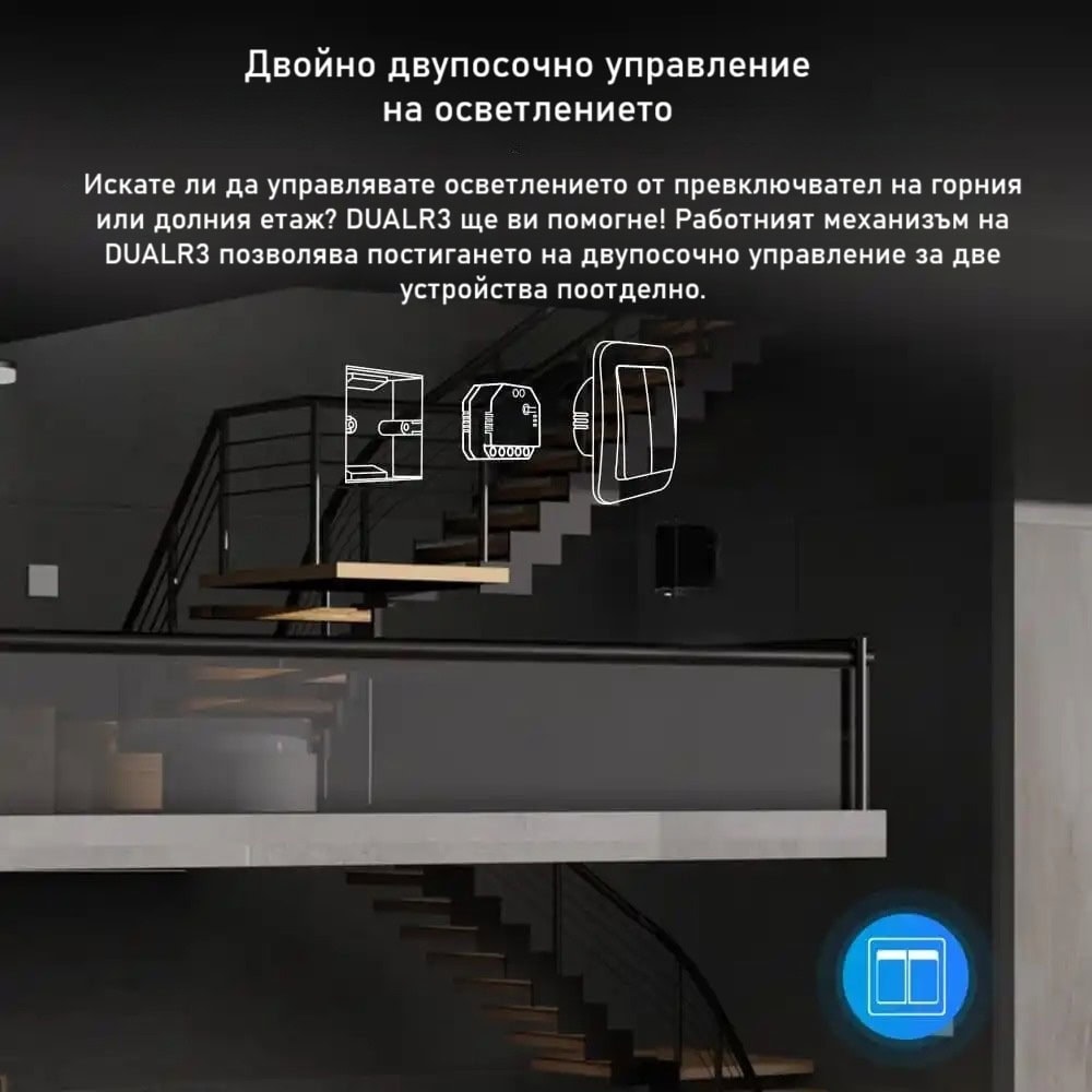 И за финал, SONOFF DUALR3 е мощен и иновативен двуканален смарт прекъсвач, който предлага не само удобство и гъвкавост при управлението на осветление и моторизирани устройства, но и интелигентно измерване на енергийното потребление. С функции като стъпков режим, LAN контрол и споделено управление, той осигурява бързо, сигурно и удобно управление, което го прави идеален избор за всяко модерно домакинство или офис.