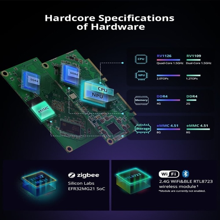 • AI Capabilities (Изкуствен Интелект): С възможността за използване на процесор с NPU (Neural Processing Unit), Sonoff iHost може да развива AI способности, като например обработка на изображения, които могат да бъдат използвани в бъдещи продукти и сценарии за умни домове.