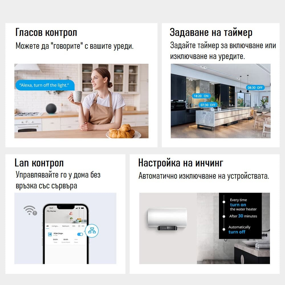 LAN контрол, времеви график, инчова настройка, състояние на захранване, следене на енергията в Alexa Energy Dashboard и още многодр.