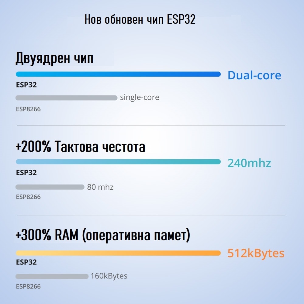 Също част от новите неща на SONOFF POW Elite е неговият ESP32 микрочип, който е 200% по-бърз от предишния ESP8622 микрочип. Той позволява на устройството да мониторира V, W и A на домашните електроуреди в реално време и да измерва кумулативната им консумация на енергия.