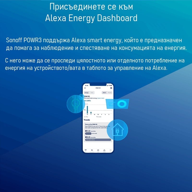 POWR3 поддържа Alexa Smart Energy, което ви позволява да проследявате потреблението на енергия в Alexa Energy Dashboard. Можете да следите както общата консумация, така и разходите на отделни устройства, за да оптимизирате сметките си за ток.