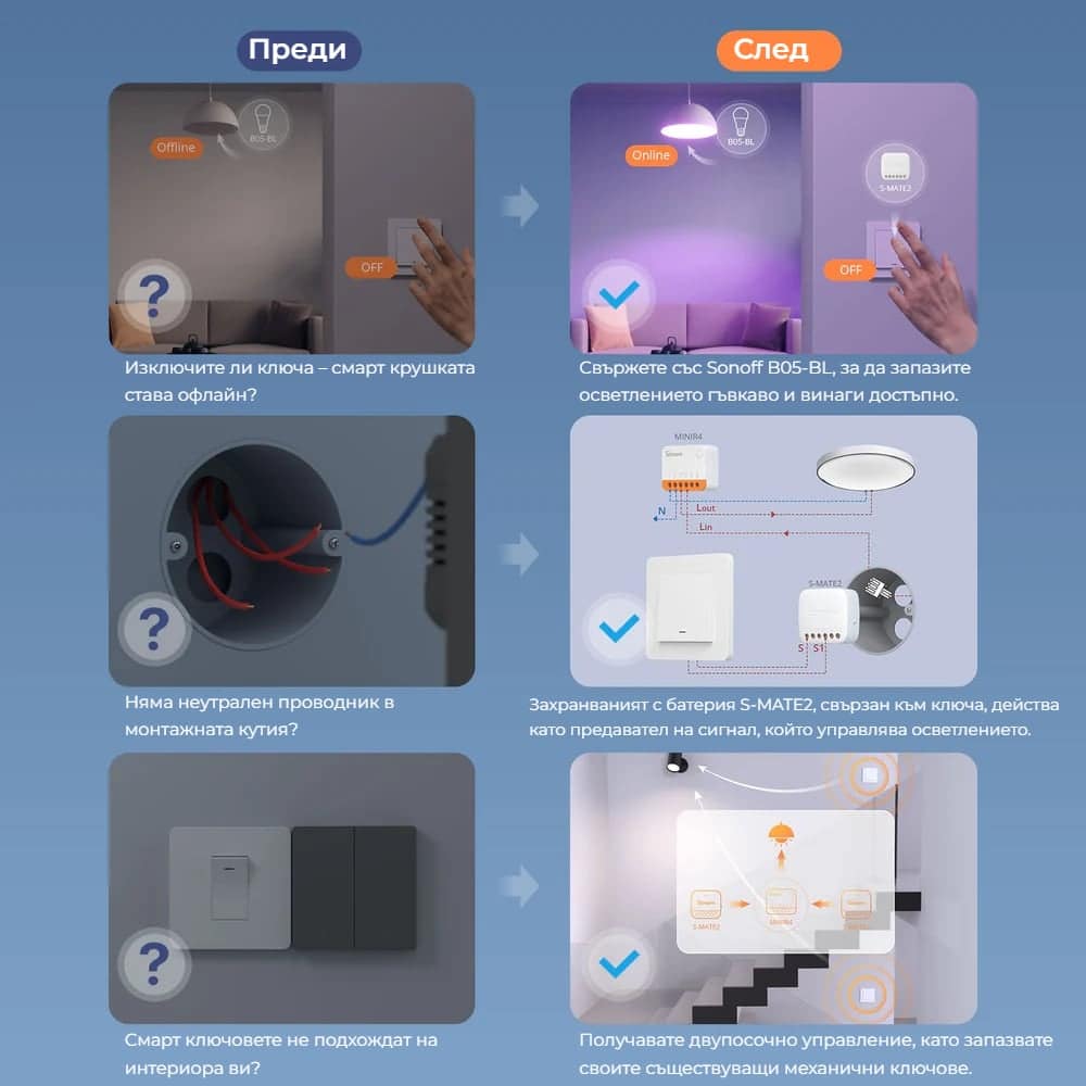 Превърнете всеки ключ в умен с SONOFF S-MATE 2!