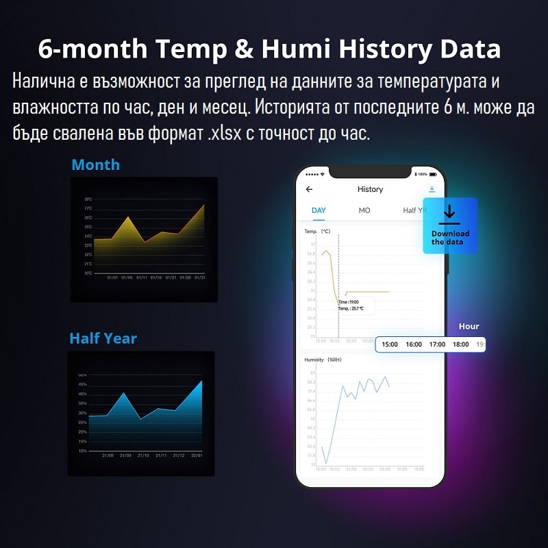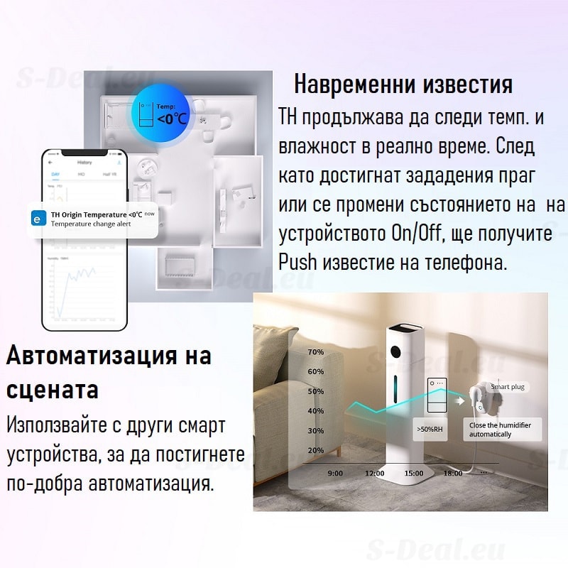 Важно е да уточним, че за да може да се възползвате от наблюдението на темп. и влага е необходимо да го комбинирате с някой от следните сензори: