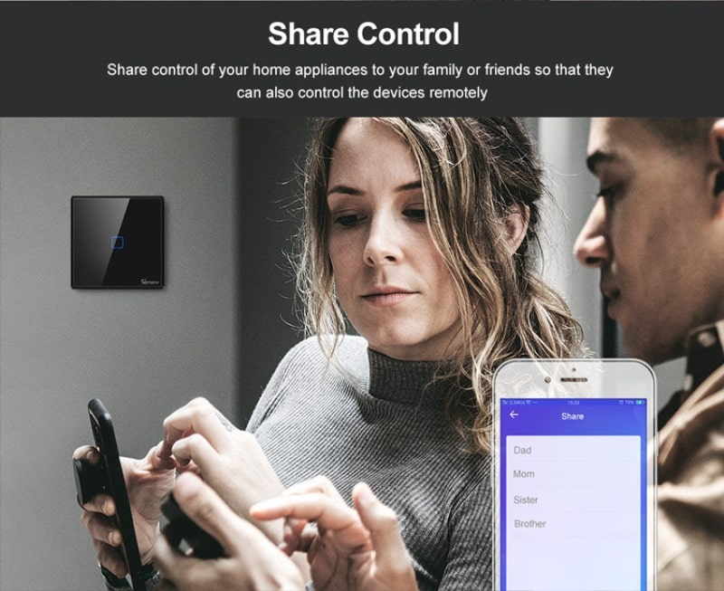 Следете състоянието на вашите превключватели, ключове и други продукти на Sonoff. Споделете ги с вашето семейство, за да контролирате вашите уреди лесно заедно, както и контролирайте достъпа до тях.