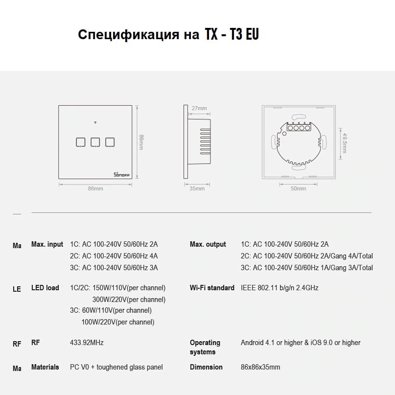 SONOFF TX – T3 Wi-Fi смарт ключ еденичен | двоен | троен