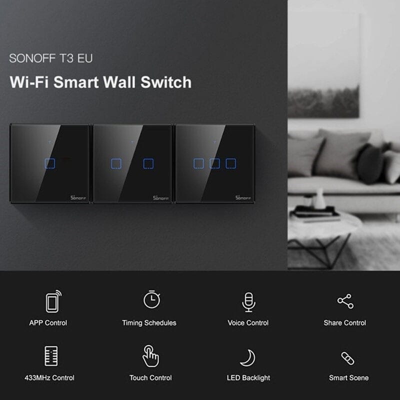 Предлагаме ви един от най-новите продукти на “Sonoff ТX – T3” [ единичен | двоен ] ключ за монтаж на стена с луксозен кристален панел. Този модел може да се управлява с: