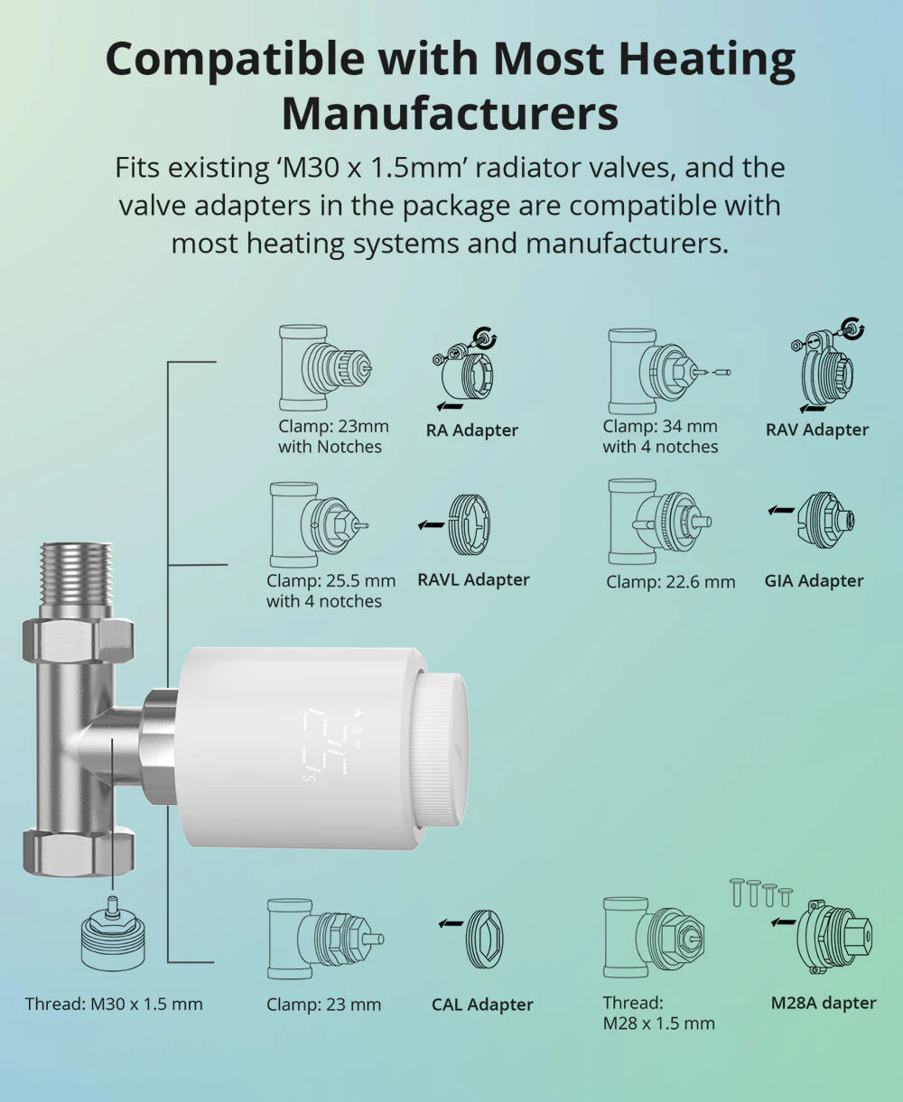❍   Лесен монтаж и съвместимост: Съвместимост със стандартни радиаторни вентили и лесен монтаж, който позволява бърза и лесна инсталация на устройството без необходимост от професионална помощ.