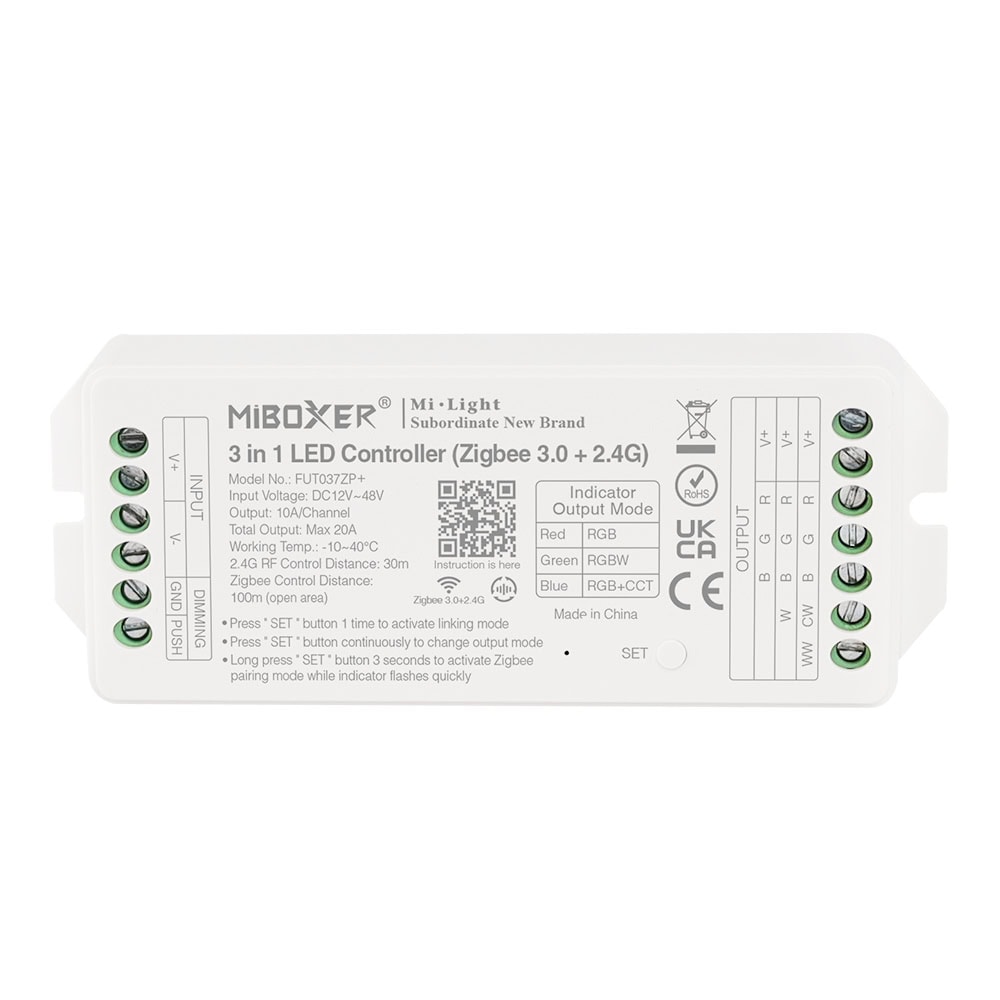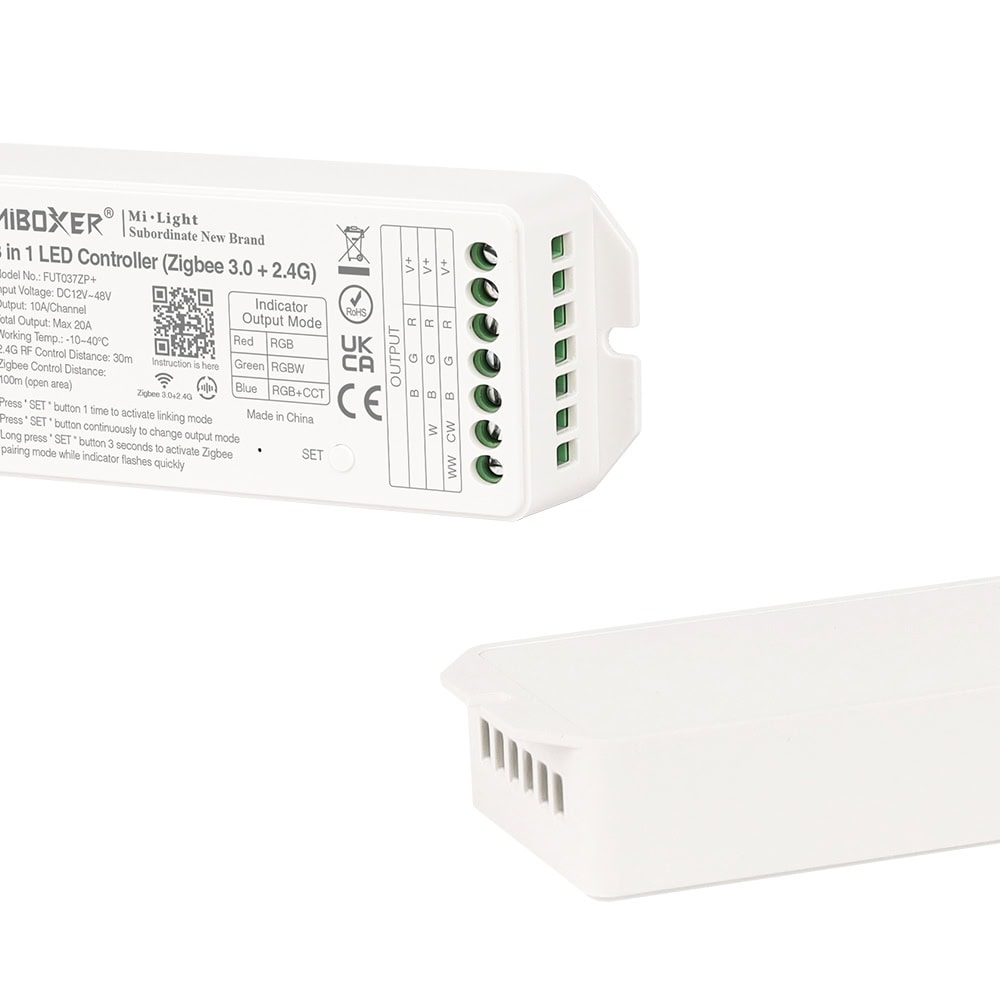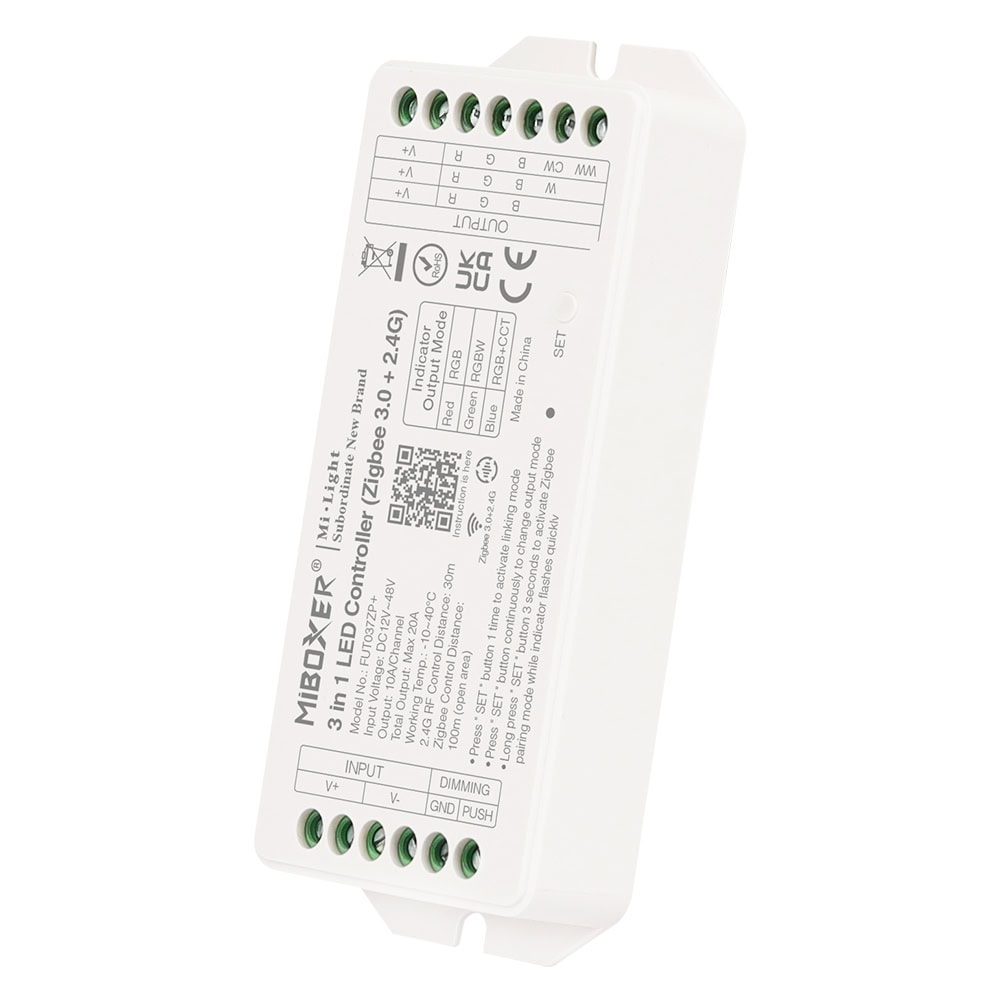 Този контролер използва 2.4GHz комуникационен модул и може да бъде контролиран чрез 2.4G RF дистанционни управления. Съвместим е със стандартния протокол Zigbee 3.0, което позволява управление чрез смартфон приложение и гласови команди от трети страни след свързване към Zigbee Gateway.