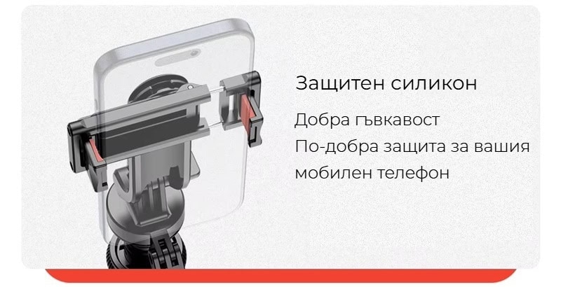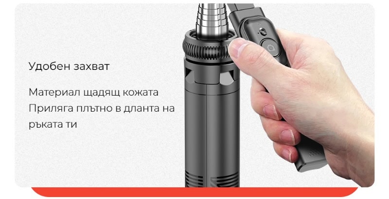 HSU C19разполага с разглобяем държач за телефон, който може да се сваля и използва отделно. Това ви дава пълна гъвкавост – можете да заснемате от различни ъгли, да монтирате телефона върху статива или селфи стика самостоятелно и да експериментирате с различни композиции, без да сте ограничени от самия стик.